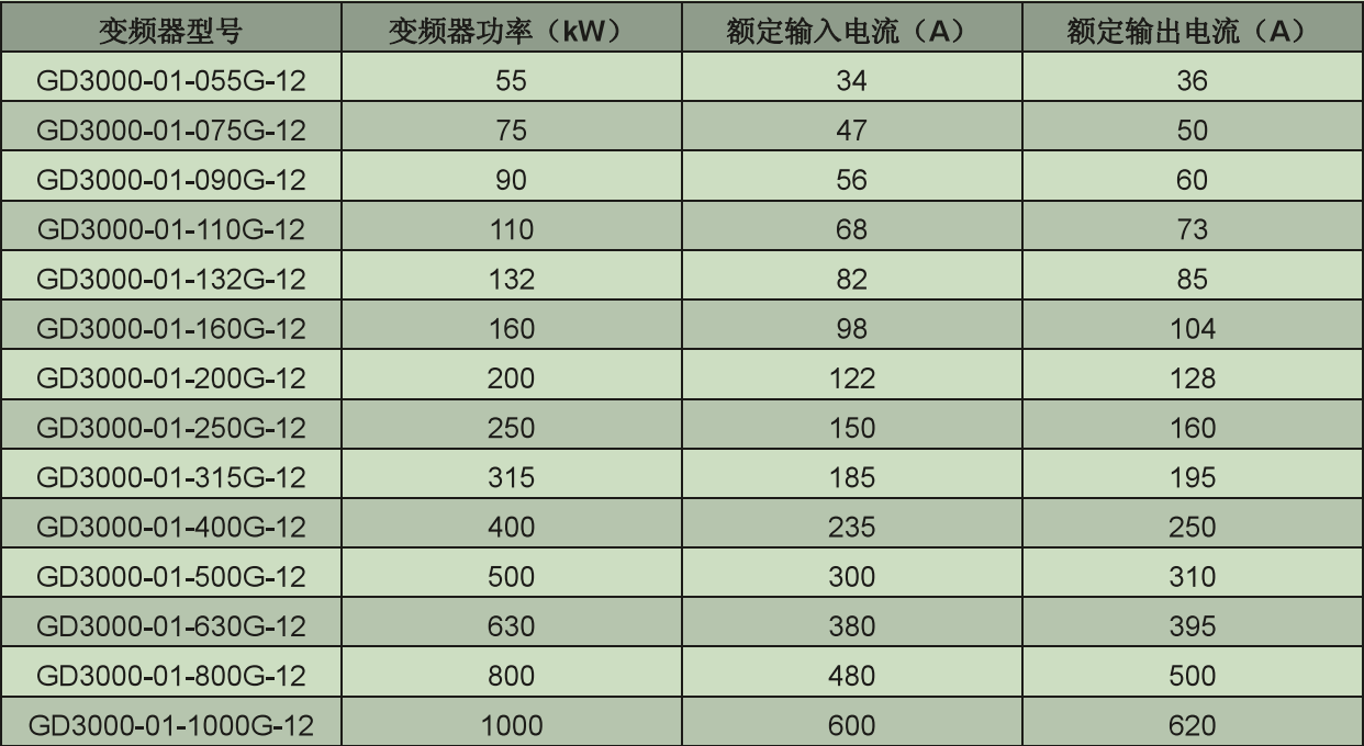 ③ 型号规格 Goodrive2000 两象限变频器主要额定电参数